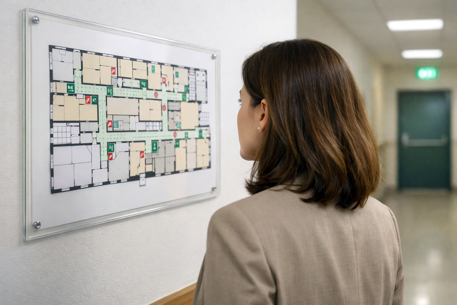 Planes de evacuación estandarizados para exhibición y conformidad, con una presentación clara y un mantenimiento documental más simple.